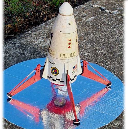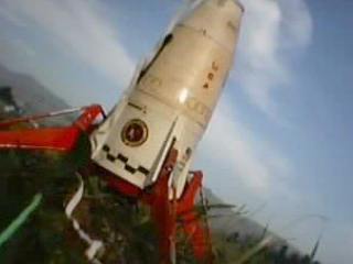 I picked up a RocSim of the Mars Lander, added the weight and shape for the camera and found it would fly on an Aerotech 18mm D13-4 (alt. est. 380') Wanting to make this more interesting, I did the first 2 flights without the DMC camera. I used the the recommended C6-3 motor and video taped the flights from a couple of different angles. The first flight went flawlessly and landed upright, but on the second I didn't wrap the chute in the shrouds. I was hoping it would open sooner, but this seemed to cause the parachute to snag the legs and it came down sideways. (I caught it)